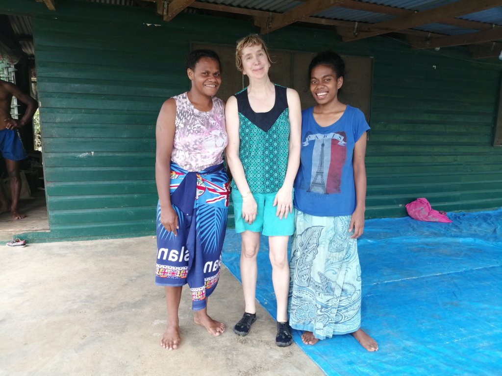 We drove to a Fijian village where James handed me over to a guide called Grace, we climbed into a 4 wheel drive vehicle and drove up to a path which we walked to a waterfall. On the way there was a huge digger clearing some rubble, at first it would not move but then it nimbly moved out of the way! When we walked to the waterfall, Grace pointed out various medical plants and wild pineapples. It was a bit slippery and grace would check I was OK and helped me when the path became quite treacherous. We arrived at the waterfall and I had a quick swim, it was lovely and cool but then the rain started. When we got back to the village, her family had prepared a special meal which I ate after the kava ceremony.